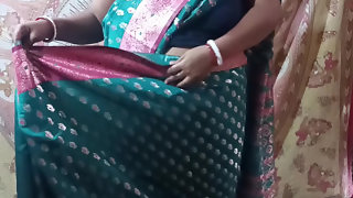 Green Saree Dropping Solo SFW