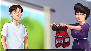 The father-in-law pressed the humungous breasts of the daughter-in-law who lives in his village and got her his weenie massaged.
